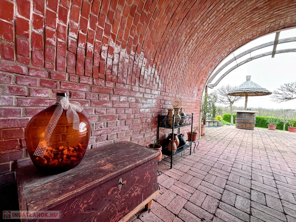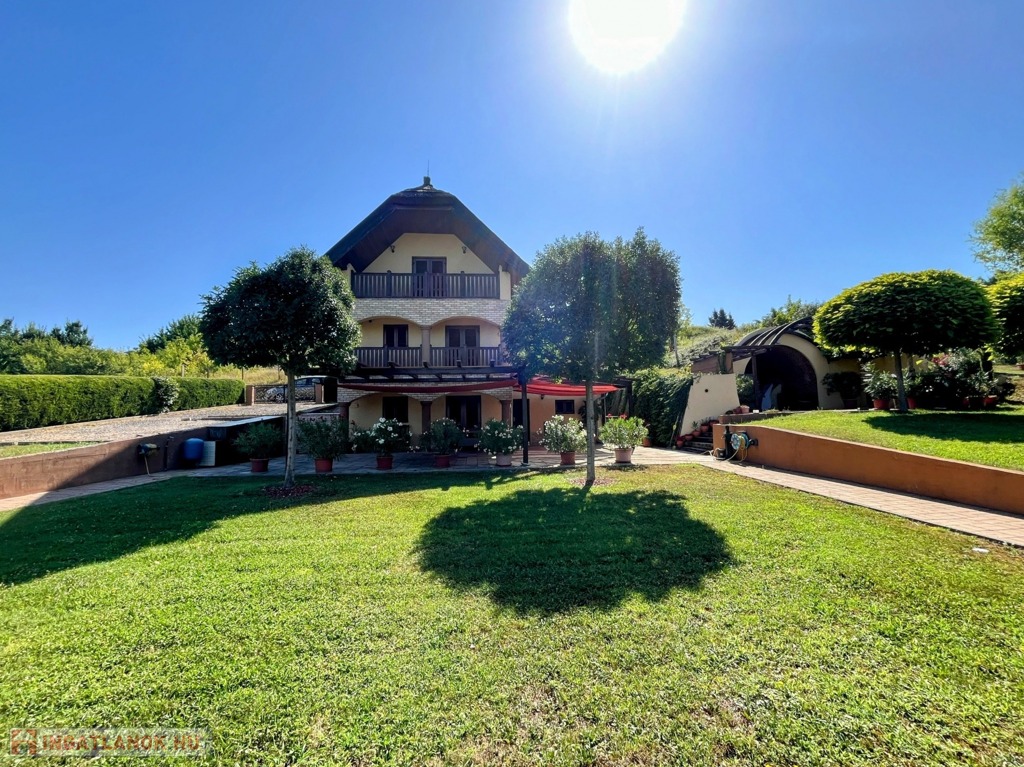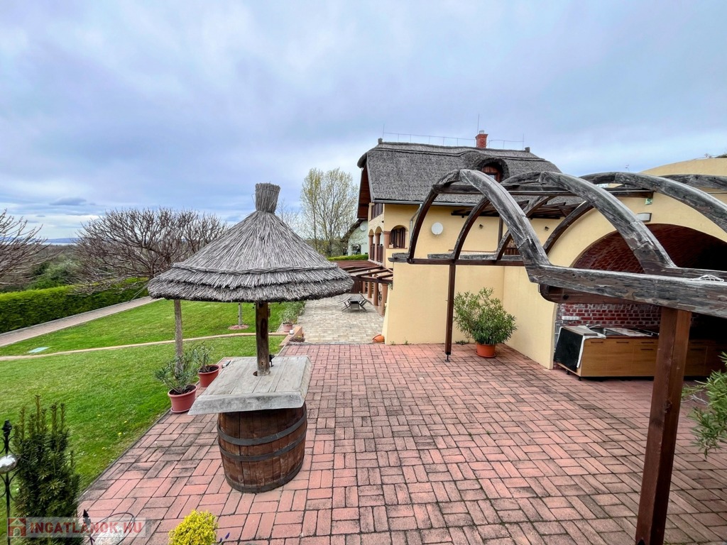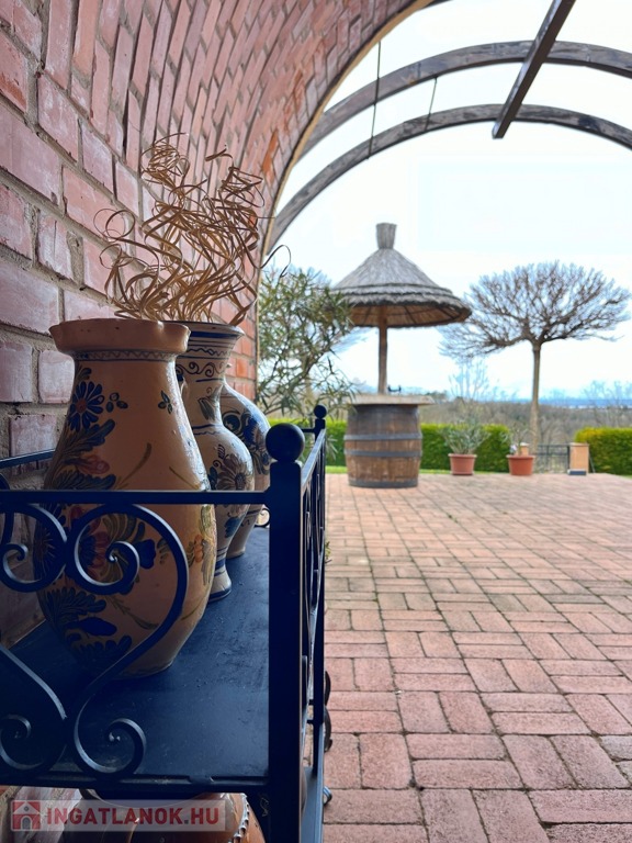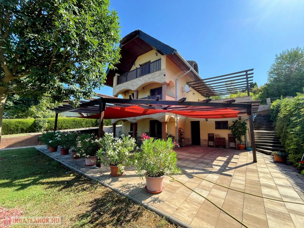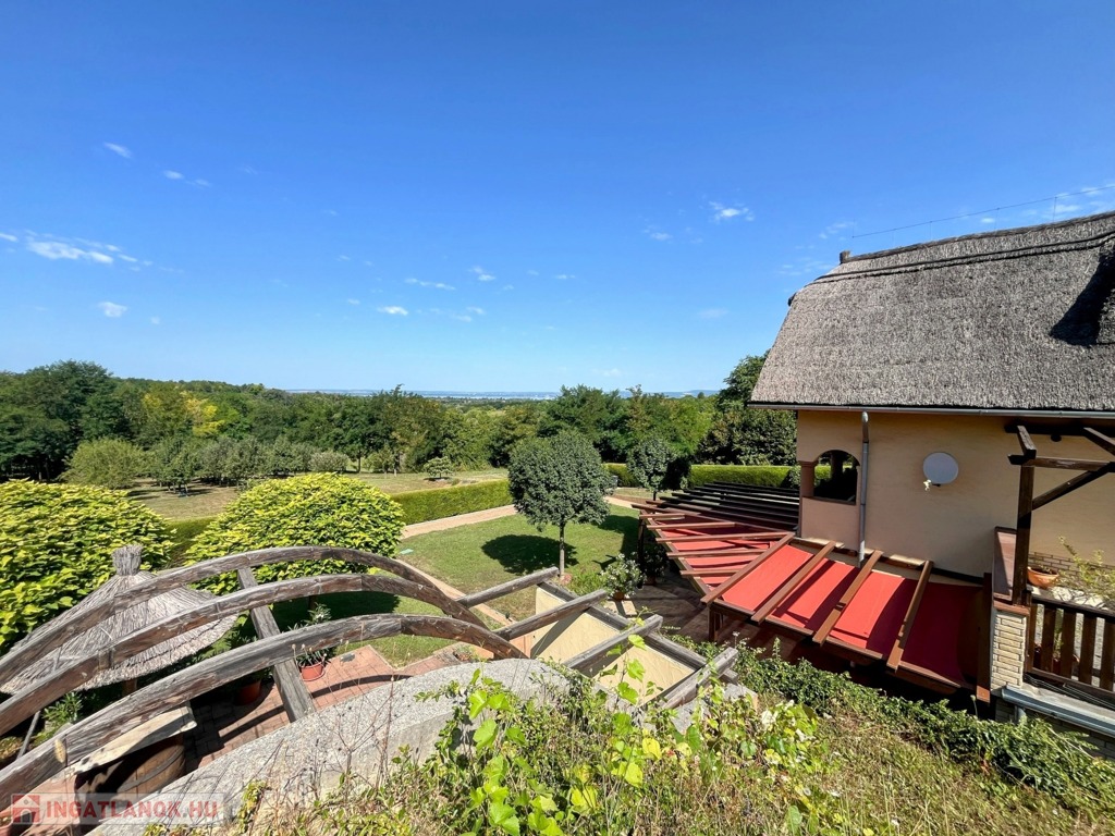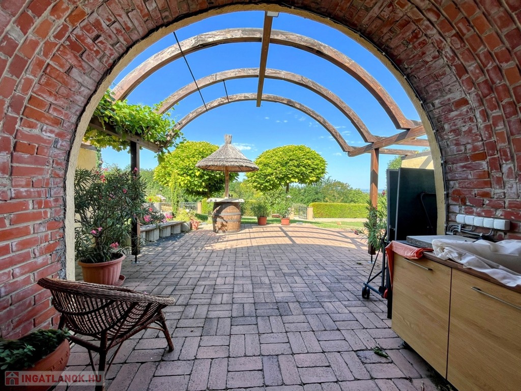 Balatonberény szőlőhegyén, egy zsákutca végén, a város zajától távol, mintha egy arborétumban lennénk, eladó ez a csodálatosan szép, panorámás, minden igényt kielégítő, pár éve épült ház. A ház erkélyeiről és a teraszról lenyűgöző kilátás nyílik a Keszthelyi-öbölre. Balatoni házként természetesen a borospince is adott, és hogy a gasztronómiai élvezetekért se kelljen a pincétől távol menni, egy nyárikonyha is kialakításra került a fedett pinceteraszon.