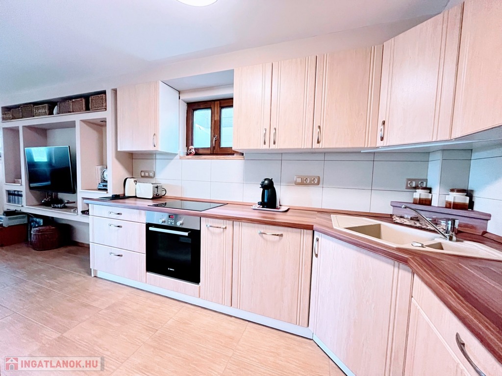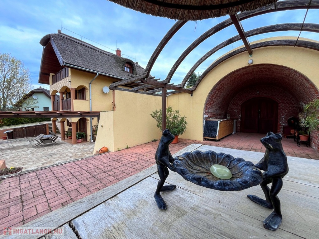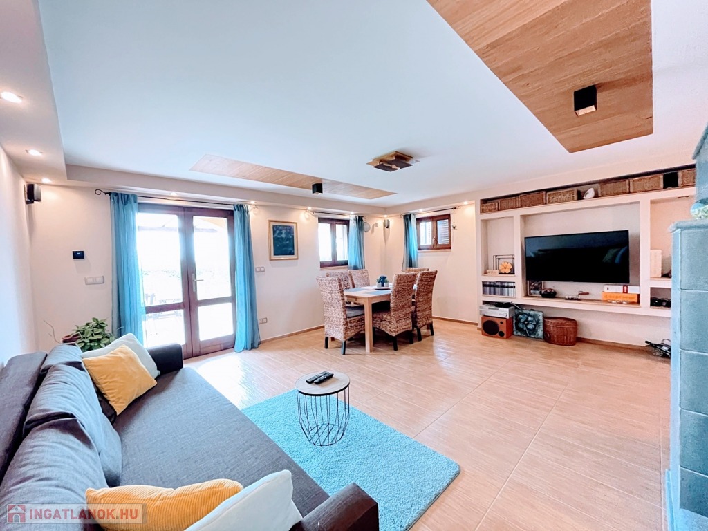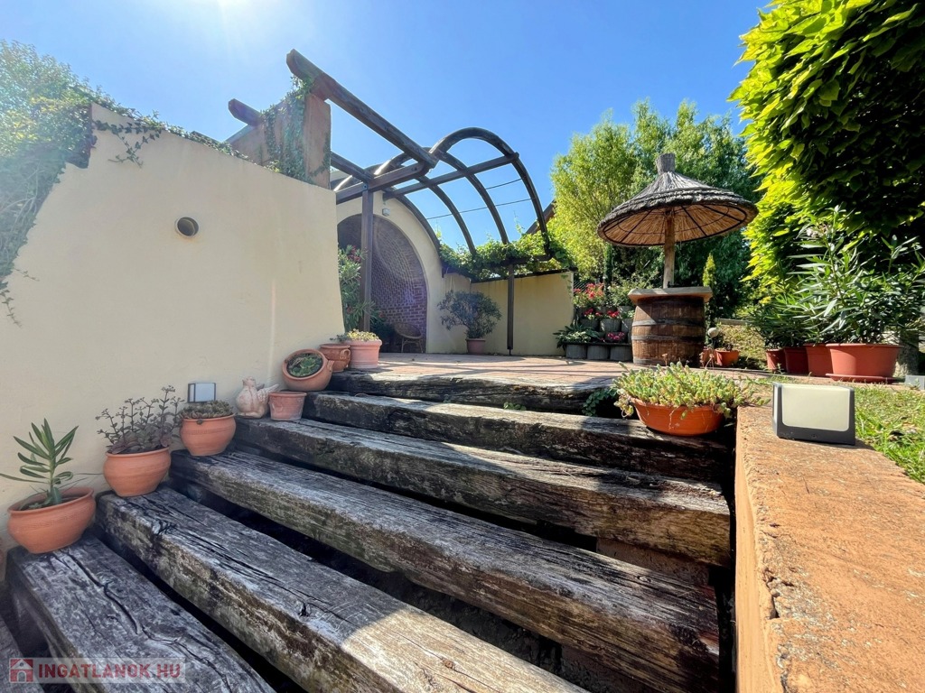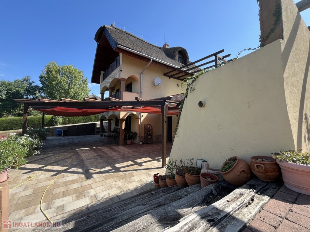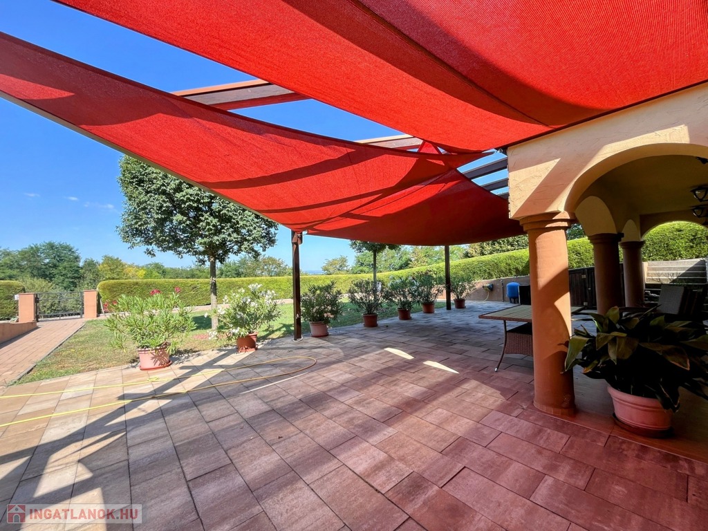 Balatonberény szőlőhegyén, egy zsákutca végén, a város zajától távol, mintha egy arborétumban lennénk, eladó ez a csodálatosan szép, panorámás, minden igényt kielégítő, pár éve épült ház. A ház erkélyeiről és a teraszról lenyűgöző kilátás nyílik a Keszthelyi-öbölre. Balatoni házként természetesen a borospince is adott, és hogy a gasztronómiai élvezetekért se kelljen a pincétől távol menni, egy nyárikonyha is kialakításra került a fedett pinceteraszon.