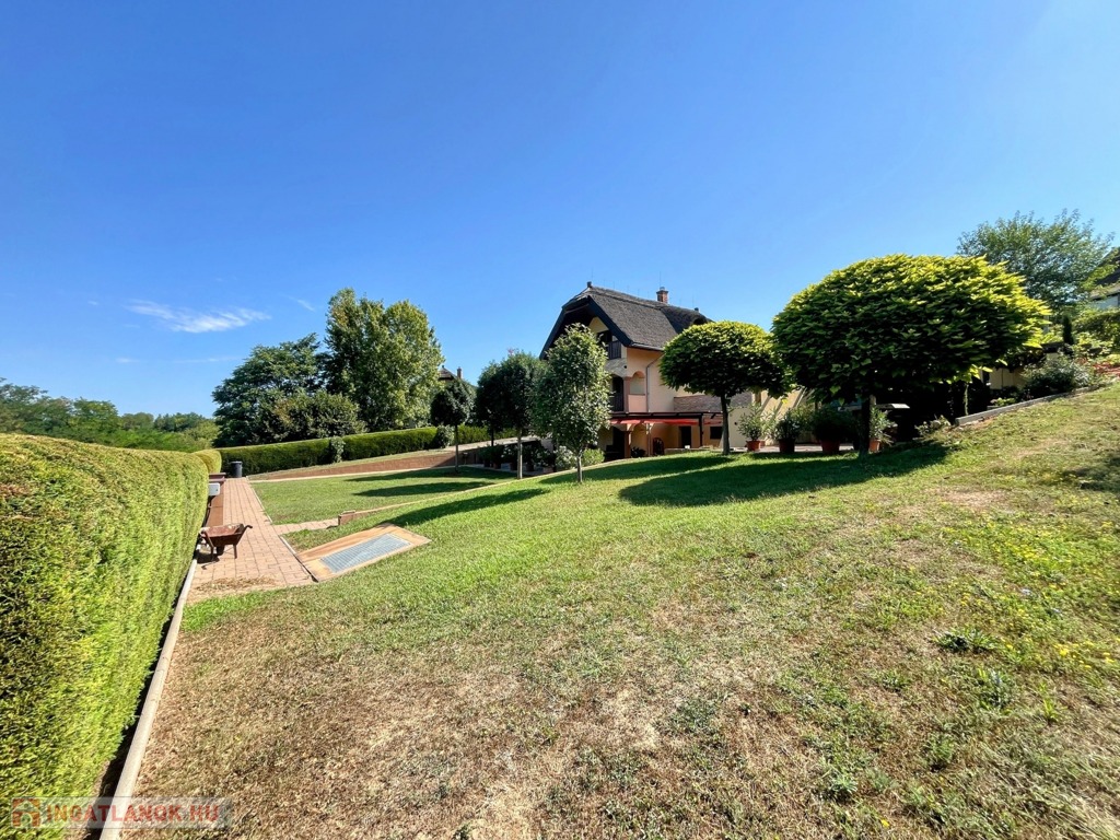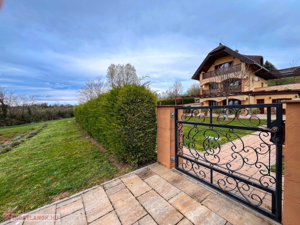 A házhoz 5900 nm-es, gyönyörűen karbantartott birtok tartozik, de igény esetén további több hektár egybefüggő terület is vásárolható hozzá.