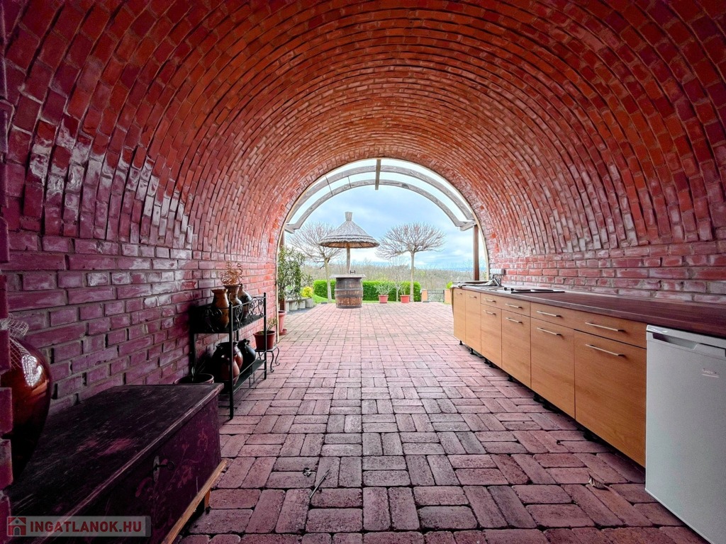 Egészen egyedi hangulata van annak, amikor a naplemente “benéz” ebbe a nyárikonyhába, ahol már érződik a vacsora illata, a pincéből pedig válogathat a házigazda az illő borok között…