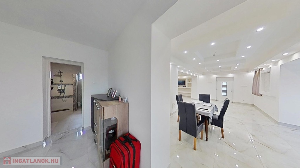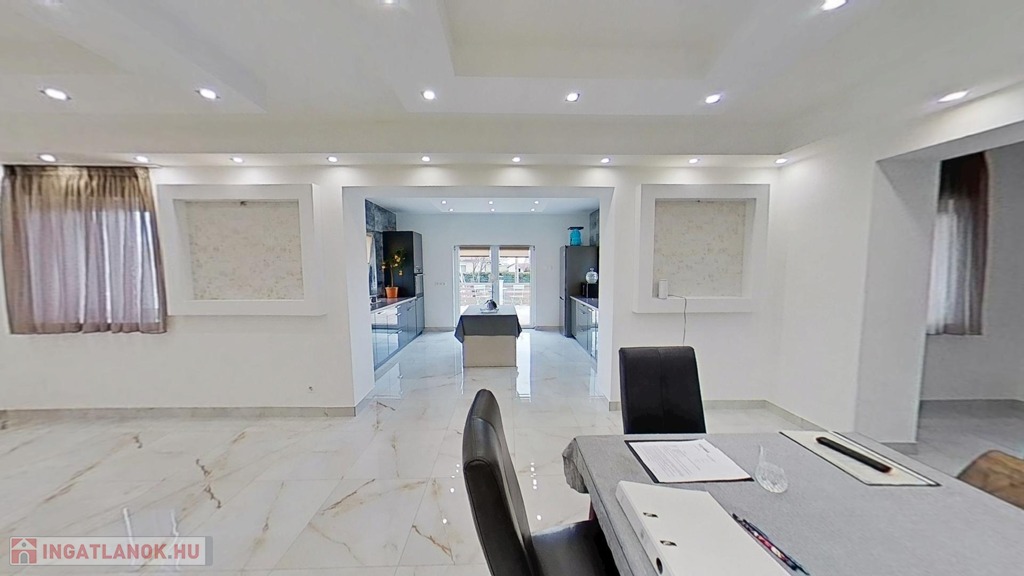 A K-i tájolású, földszintes, 146 m2-es, 3 szobás, 2 fürdőszobás, tágas nappalival rendelkező, kívül-belül megújult családi ház felújítása 2022-ben kezdődött és 2024-ben érte el jelenlegi formáját.