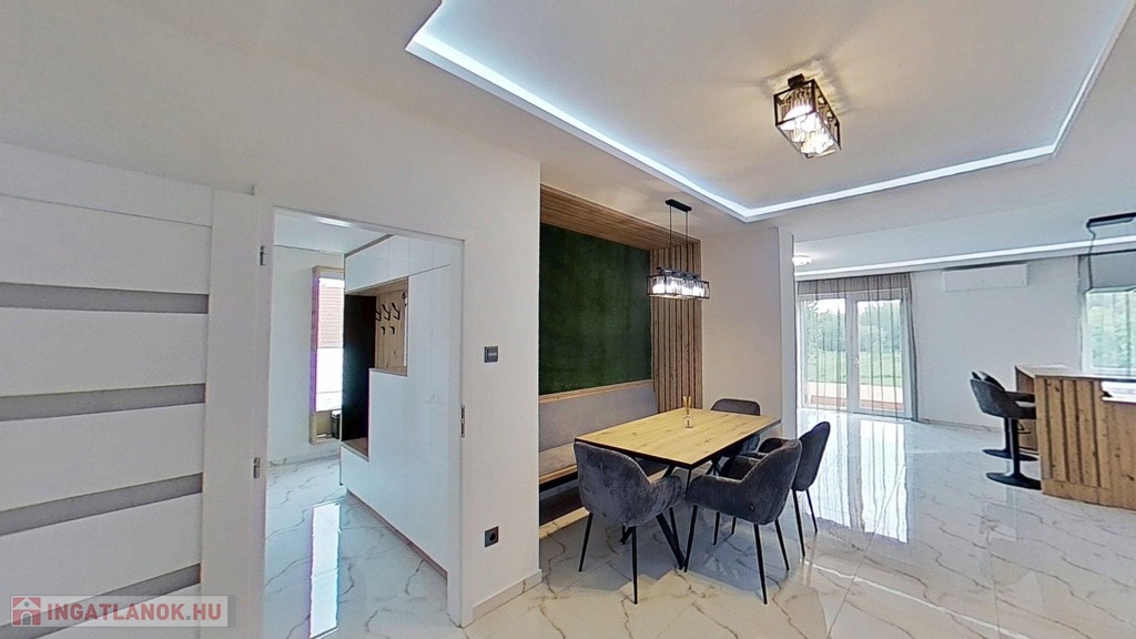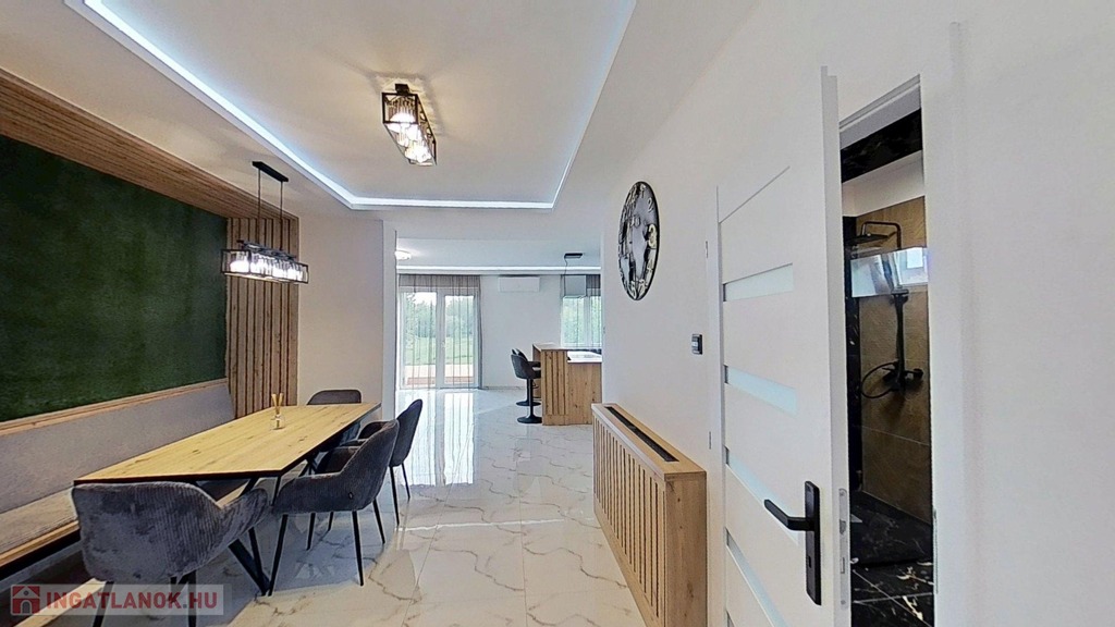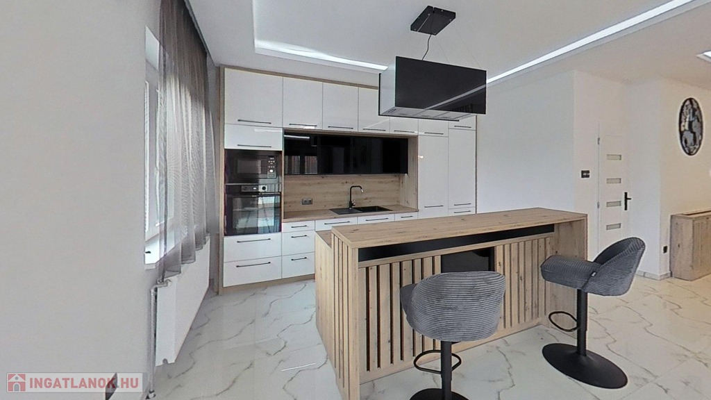 IGAZI METAMORFÓZIS KERETÉBEN az eredetileg 1986-ban épült háznak, 2024-ben a főfalait megtartva indult meg az újjászületése a tulajdonos egyedi elképzeléseinek a mentén, így nem egy unalmas replika, hanem egy sok otthont látott bútortervező cég élményeinek és fantáziájának az összessége. A beépített bútorok természetesen újak és garanciálisak.
