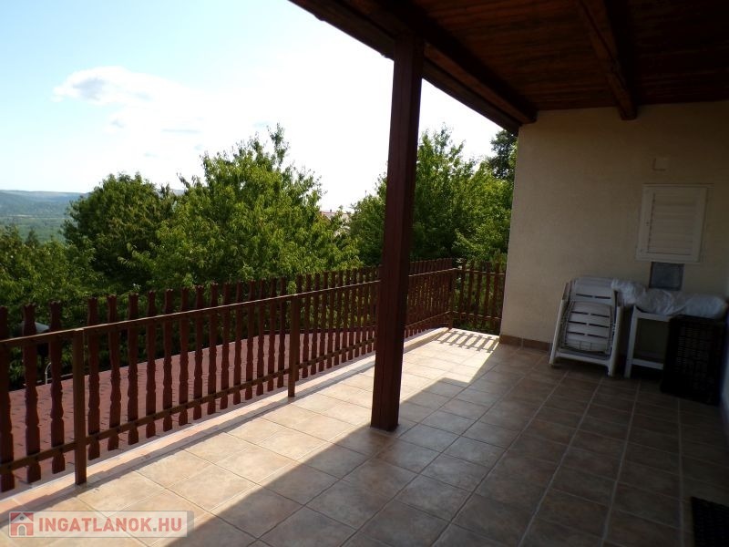 - Felső szint: két félszoba, fürdőszoba WC-vel, különleges panorámás fedett terasz (22 m²), mely a szobából és kívülről is megközelíthető.