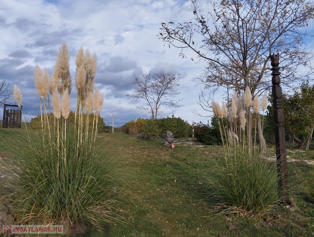 1242 m2-es, összközműves telken fekszik, gáz nem került bevezetésre az ingatlanba. További melléképületek a kertben: bazalt kőből épült 25 m2-es pince, 2 m2-es kerti tároló, valamint egy 25 m2-es lemezgarázs.