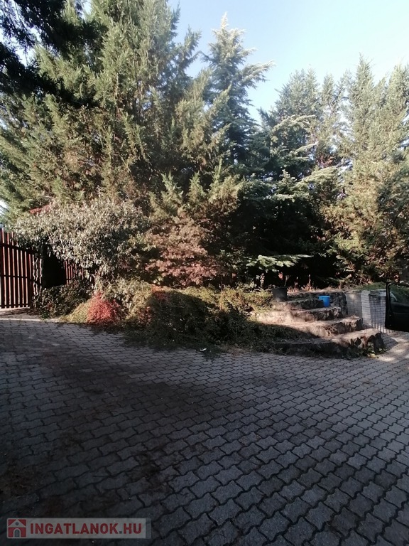 A garázs előtti lejáró viacolorral van burkolva és télen fűthető. A kertben az öntözést kútról oldhatjuk meg.
