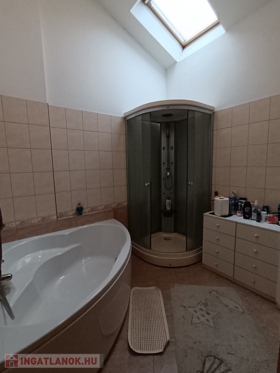 Az emeleten 3-3 hálószoba 1-1 fürdőszoba és külön 1-1 mosókonyha kapott helyet. A fürdőszoba világos, tágas zuhanykabibannal felszerelve.