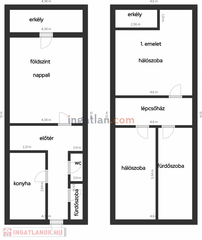 Az alsó szinten tágas garázs, szerelőakna és tároló van, a felette levő 2 emelet, lakószint, amely 45 nm szintenként, valamint egy beépíthető tetőtér.