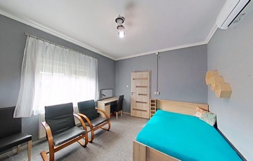 Bővítési lehetőség az oldal és a hátsó kert irányában van benne, 2 bejárata van. Parkolási lehetőség garázsban, az udvaron, a ház előtt lehetséges több személyautó számára.