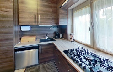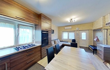 -valamint új beépített konyhabútorral és gépesítéssel (Bosch villanysütő 5 fejes gázrózsákkal, mosogatógép, gránit mosogató és csap) , illetve 3 db 3,5 kW-os Gree klímával is gazdagodott a ház, melyek természetesen a vételár részét képezik.