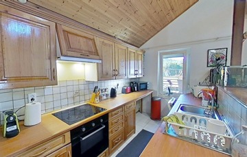 Ennek a festői környezetben fekvő családi háznak minden porcikájából extrém nyugalom árad. Otthonos hangulata, bravúros kialakítása, korszerű megoldásai, meseszerű kertje, a kertre és a várra tekintő nagy ablakai miatt minden korosztály számára hívogatóan hathat, akik új otthont keresve, új fejezetet nyitnának az életükben a gyönyörű Bakonyban.