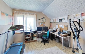 A ház 1994-ben épült Leier Habizol betontéglából, 3 szintes, belső hasznos területe 2 szinten 180 m2 + 80 m2-en, félszuterén egyállásos garázs, tároló és kazánház került kialakításra, elektromos autó töltési lehetőséggel.