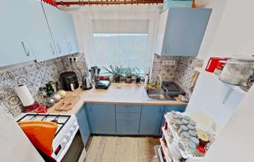A 30 nm-es, egyszintes házba belépve egy kis előszobában találjuk magunkat, és innen nyílik a kis hálószoba, valamint a nappali. A nappaliból egy közlekedőn át jutunk a panorámás kis konyhába vagy a fürdőszobába.
