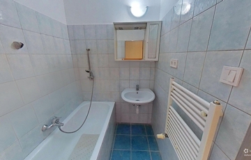 A fürdő és az illemhelyiség külön térben helyezkedik el.