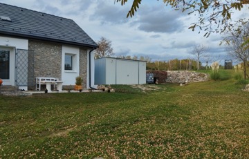 1242 m2-es, összközműves telken fekszik, gáz nem került bevezetésre az ingatlanba. További melléképületek a kertben: bazalt kőből épült 25 m2-es pince, 2 m2-es kerti tároló, valamint egy 25 m2-es lemezgarázs.